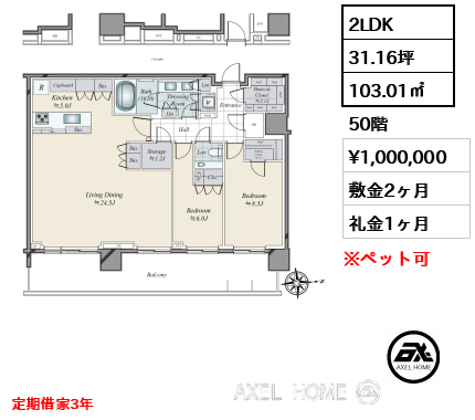 敷1ヶ月 礼0ヶ月 |