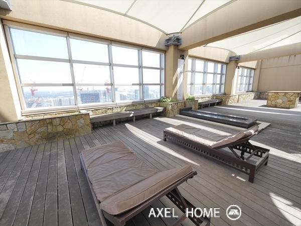 | 共有設備 | コンシェルジュ フィットネス プール パーティールーム スカイラウンジ オートロック エレベーター 宅配ロッカー 24時間有人管理 防災センター 駐輪場 防犯カメラ 駐輪場:100円/1ヶ月 1階 ミニコンビニ コンシェルジュサービス 防災センター ロビーラウンジ 27階(最上階) スカイラウンジバー(6:00~24:00) スカイガーデン(1区画500円/1時間) スカイプール(20M) ジャグジー アスレチック設備(フィットネスジム) ゲストルーム(1泊4,000円) |