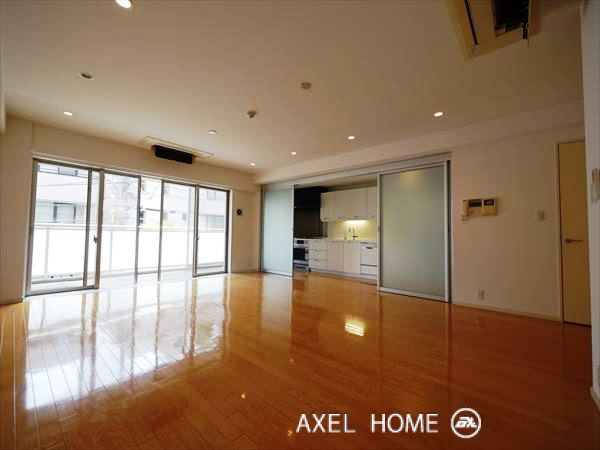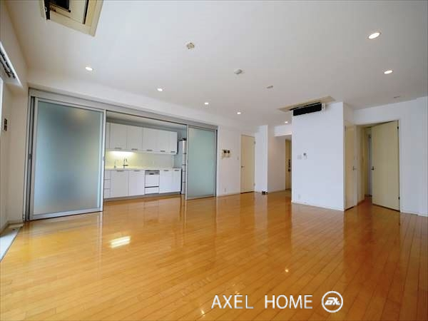 千駄ヶ谷3丁目、千駄ヶ谷アドレスで随一の高級マンションが立ち並ぶエリアにあります。戸数が少なく、エントランスや廊下等の共用部も限りなくシンプルな造りになっている為、住空間を最大限に確保しているなという印象を受けました。高級感重視というよりはお子様がいるファミリーの方にお勧めしたいマンションです。大きなリビングで盛大にホームパーティーを開いてもキッチン周りは引き戸で隠せるのがポイント高いですね!