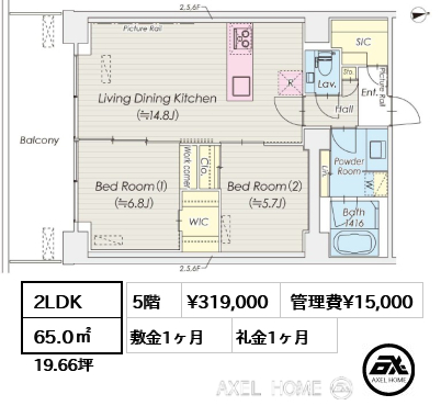 2LDK | 65.0m2 | 詳細 |