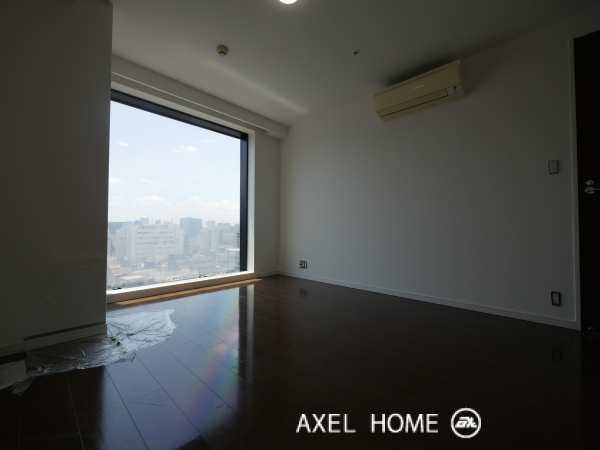 外観はバリッとしたガラスウォールがシャープでとてもカッコイイです。住居部分は8・9階となり、エントランスに行くまでのアプローチも雰囲気が素敵です!今回8階の1LDK・57.8㎡のお部屋を内見しました。まず8階エレベーターを出て感動したのが、空間を惜しみなく広く使っているフロアーロビー!贅沢さを感じます。お部屋の設備はもちろん申し分なく、リビング・洋室・浴室など各箇所がゆったりとした造りです。リビングの窓が足元からあるとても大きな窓なので解放感があり、眺望も抜群なので夜景を存分に楽しめるでしょう♪