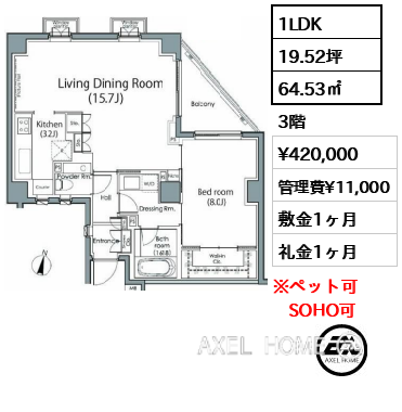 | 条件 | 保証会社利用必須 ペット(小型犬または猫1匹)飼育相談、SOHO相談可(敷金1ヶ月追加) |