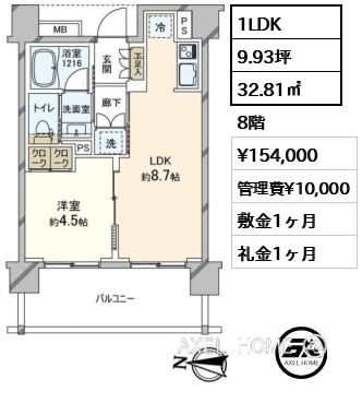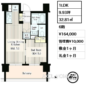 所在階 賃料 管理費 敷金・保証金/礼金 間取り 面積 詳細