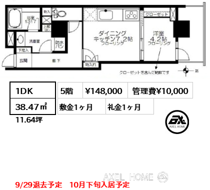 | 礼金 | 1ヶ月 |