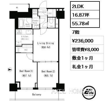 | 面積 | 55.53㎡ 16.80坪 |