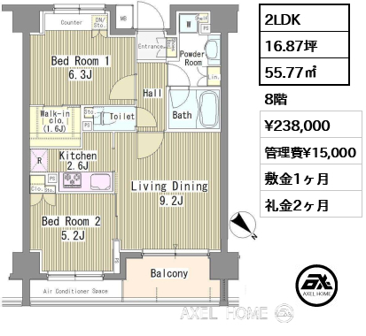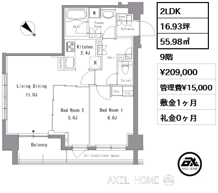 | 礼金 | 2ヶ月 |