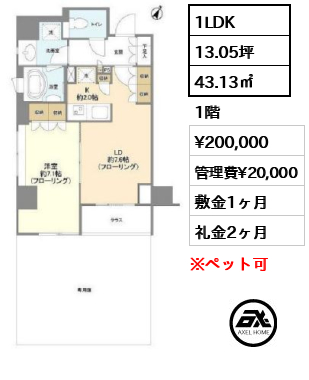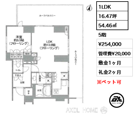 保証会社利用必須 ペット相談可(小型犬1匹まで、礼金1ヶ月追加)