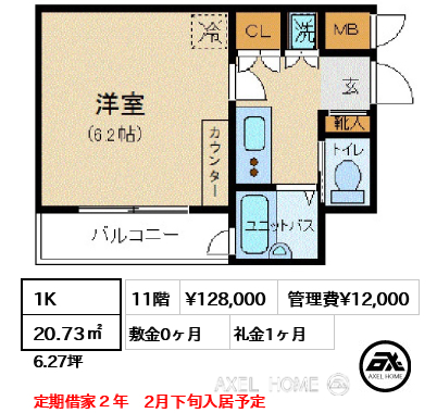 | 面積 | 20.73㎡ 6.27坪 |