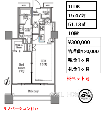 | 条件 | ※分譲賃貸の為、お部屋によって条件が異なります。 |