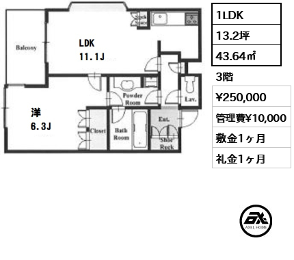 | 面積 | 43.64㎡ 13.20坪 |