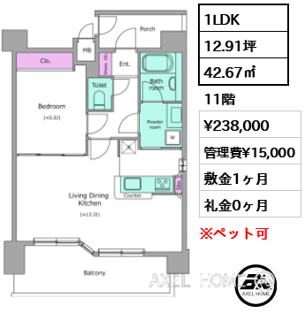 | 条件 | ペット可(小型犬又は猫1匹に限る、敷金1ヶ月追加) |
