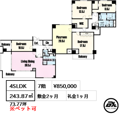 | 条件 | ※分譲賃貸の為、お部屋によって条件が異なります。 |