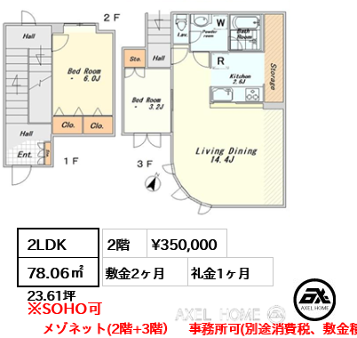 | 条件 | SOHO・事務所相談可(別途消費税)敷金退去時1ヶ月償却 保証会社利用必須 |