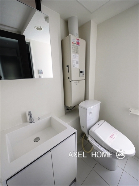 白を基調とした外観で人気のデザイナーズマンションです。内見したお部屋は、ワンルーム、20.3㎡になります。多少いびつな間取りですが、モダンな内装はデザイン性抜群です。一人暮らしの方にオススメですよ。
