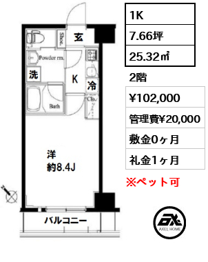 | 条件 | お部屋によりペット可(小型犬1匹まで/敷金1ヶ月増) |