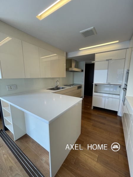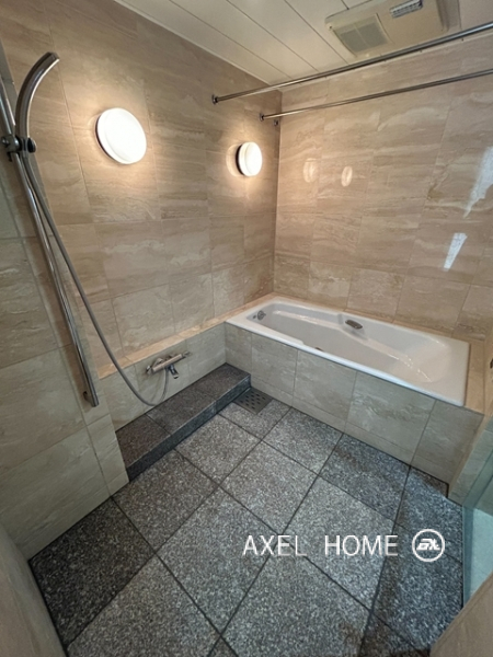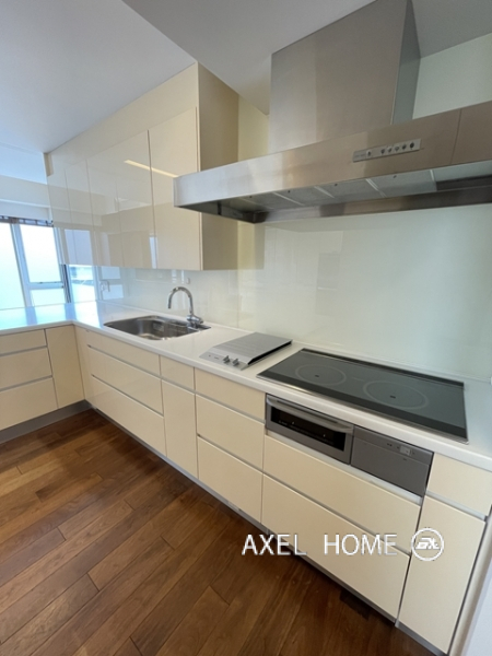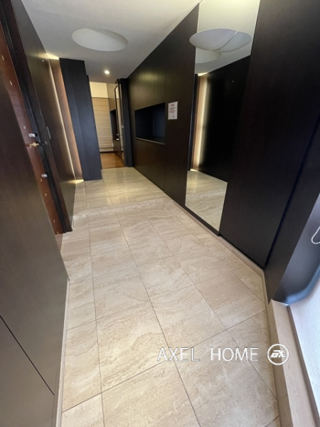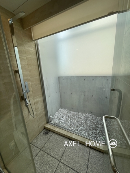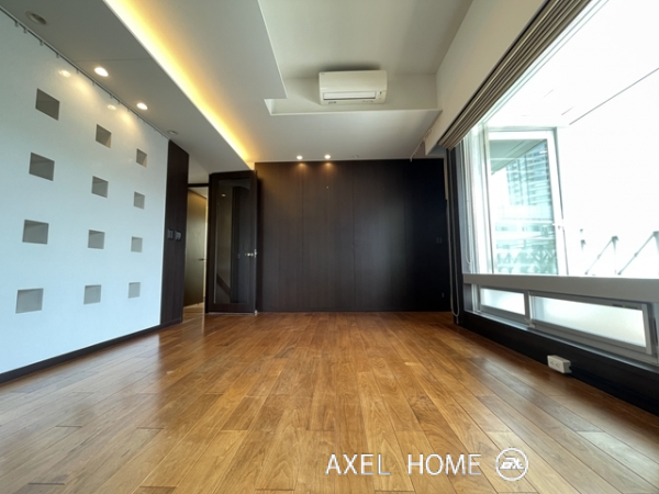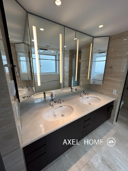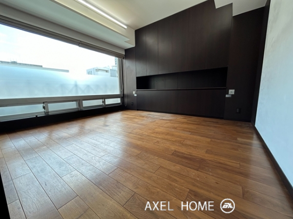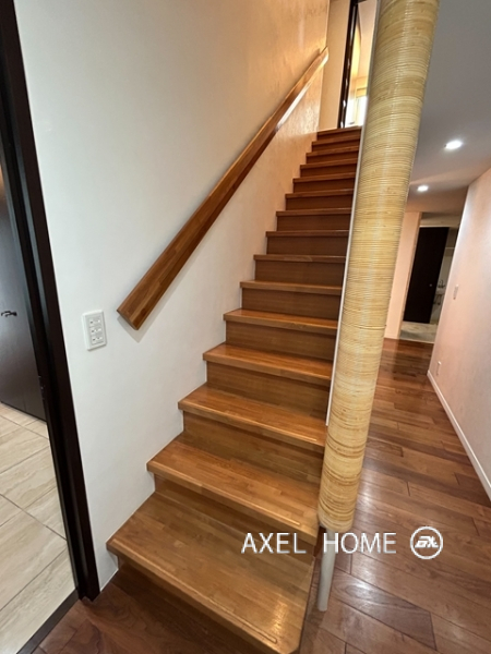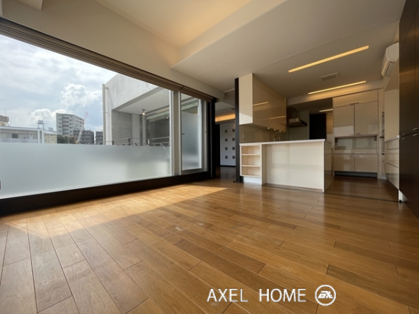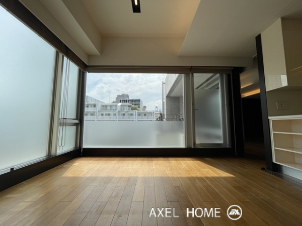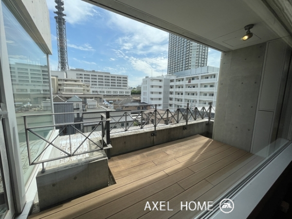 今回は4LDK・189.89㎡、4~5階のメゾネットタイプのお部屋を内見しました。1フロア1住戸とプライバシーに配慮されたプライベート空間♪5階がメイン玄関、4階にも玄関がありどちらからも行き来でき、どちらの階にもトイレとシャワーがあるので2世帯にもいいですね。リビングは南向きで窓が大きいこともあり明るく、開放感があります。バルコニーはウッドデッキでお洒落ですよ。