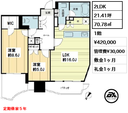 | 保証会社 | 保証会社利用有:初回賃料総額の50%相当額、別途更新料有