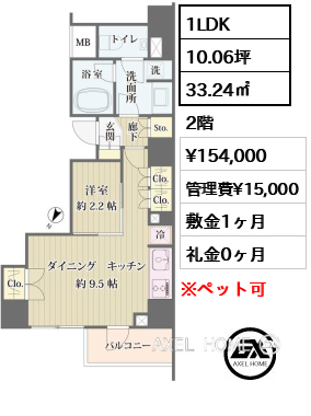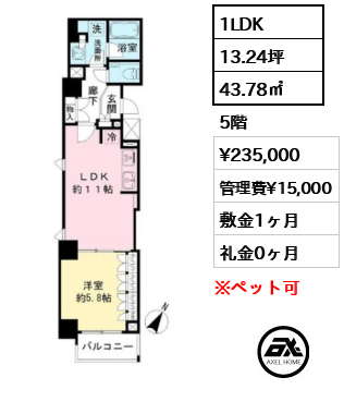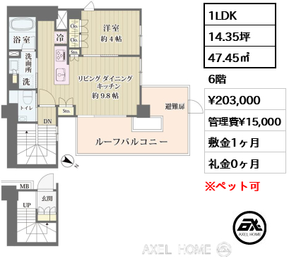 | 条件 | ペット相談可(小型犬または猫1種類、敷金1ヶ月追加) |
