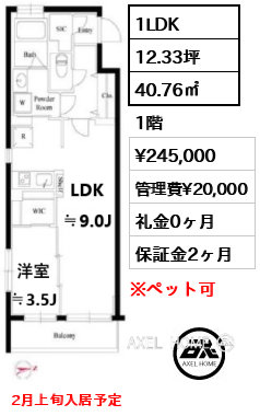 | 賃料 | 150,000円〜245,000円 |