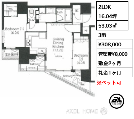 敷金 | 2ヶ月 |