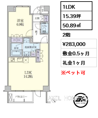 ペット相談可(小型犬2匹迄、敷金1ヶ月追加/償却)
