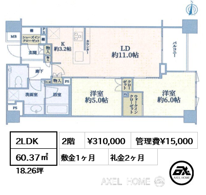 最終更新日: 2026/01/12| 所在階 | 賃料 | 管理費 | 敷金・保証金/礼金 | 間取り | 面積 | 詳細 | |