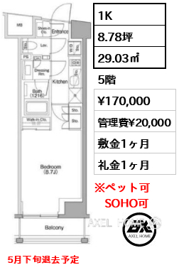 | 礼金 | 1ヶ月 |