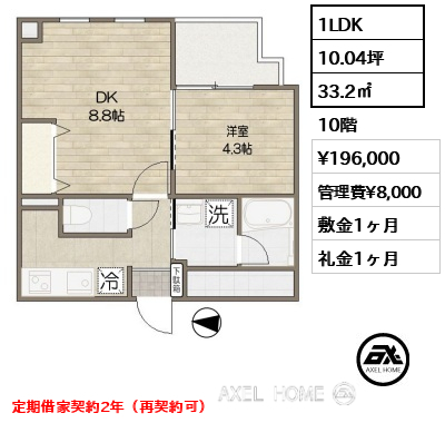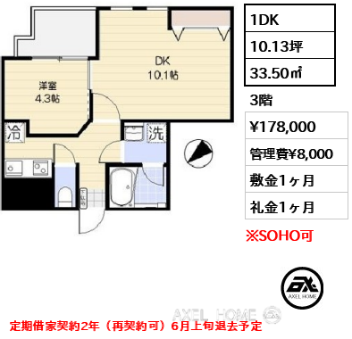 | 条件 | 楽器相談可(アップライトピアノ・電子ドラム 他相談) 演奏可能な時間帯9時~23時 再契約型定期借家契約 |