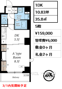 | 面積 | 35.80㎡ 10.83坪 |