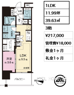 | 面積 | 39.63㎡ 11.99坪 |