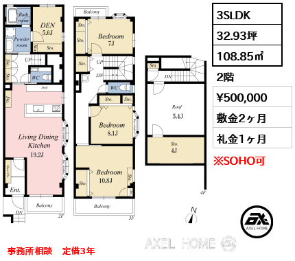 このお部屋を見たスタッフコメント今回内覧したお部屋は108.85㎡の3SLDKタイプのお部屋です。2階~4階の賃貸なので戸建て感覚で使用が出来ます。お部屋もしっかり区切らているのでプライバシーも保たれますね。お部屋全体は、3面採光でとても明るい印象を受けました。各お部屋収納も多くあり、屋上には大きな物置があるので荷物が多い方には必見です。トイレ、洗面台も2箇所あるので、入居人数が多い方にも嬉しい部分です。住居兼事務所や収納重視の方は必見です!千代田麹町店 清水 利洋 |