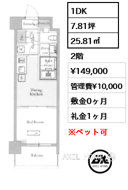 | 条件 | ペット可(小型犬or猫 計1匹迄、敷金1ヶ月) |