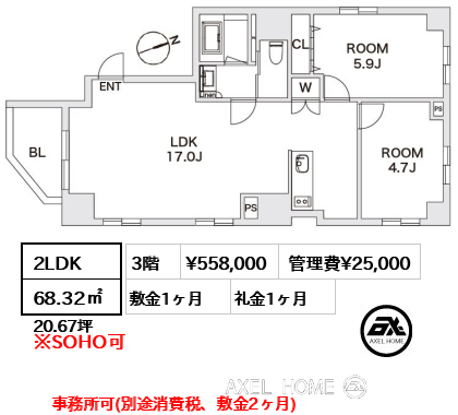 | 条件 | SOHO利用・事務所利用相談可(別途条件が異なります) |
