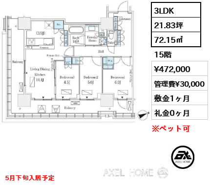 15階 | 472,000円 | 30,000円 |