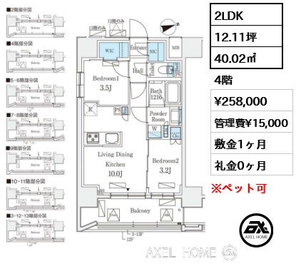 最終更新日: 2026/01/12| 所在階 | 賃料 | 管理費 | 敷金・保証金/礼金 | 間取り | 面積 | 詳細 | |