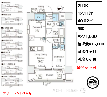 13階 | 265,000円 | 15,000円 |