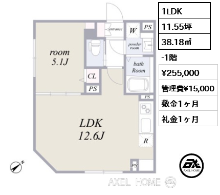 -1階 | 255,000円 | 15,000円 |