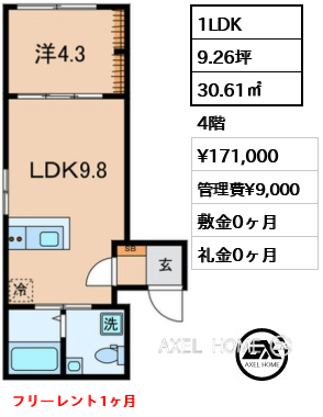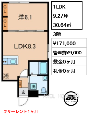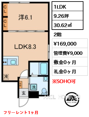 1LDK | 30.62m2 | 詳細 |