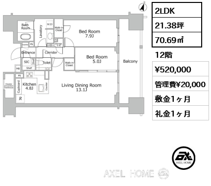 2LDK 70.69m2