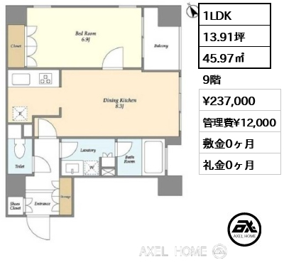 敷1ヶ月 礼0ヶ月 |