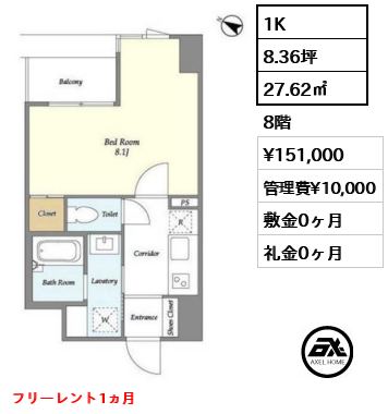 敷1ヶ月 礼0ヶ月 |