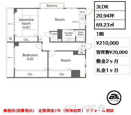 敷1ヶ月 礼0ヶ月 |