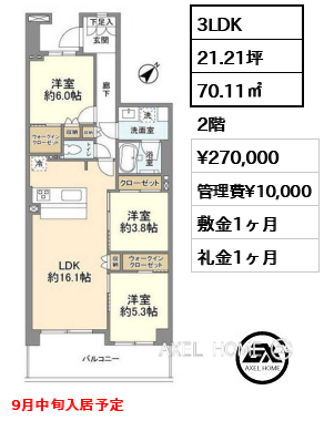 敷1ヶ月 礼0ヶ月 |