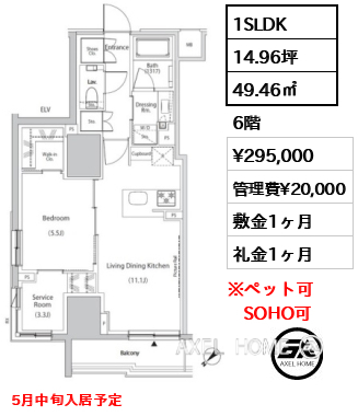 敷1ヶ月 礼0ヶ月 |