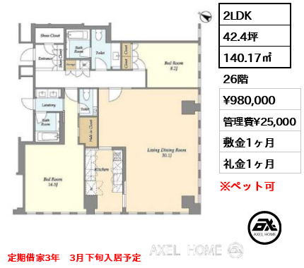 敷2ヶ月 礼1ヶ月 |