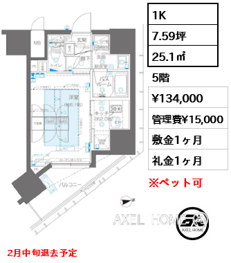 敷1ヶ月 礼0ヶ月 |