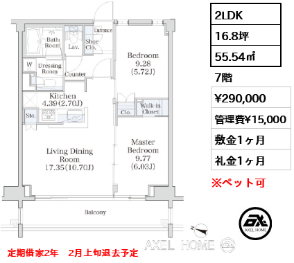 敷1ヶ月 礼2ヶ月 |