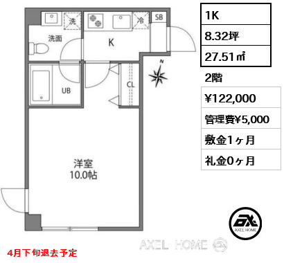 2階 122,000円 5,000円 1ヶ月