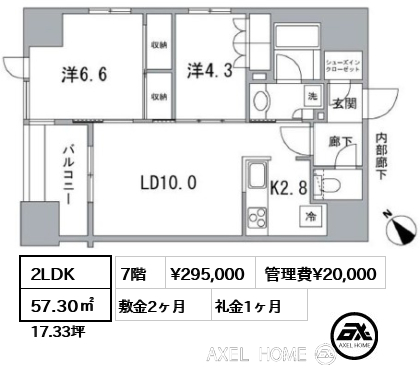 7階 295,000円 20,000円 2ヶ月