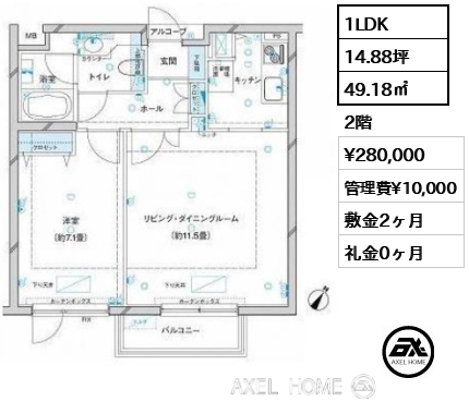 敷1ヶ月 礼0ヶ月 |